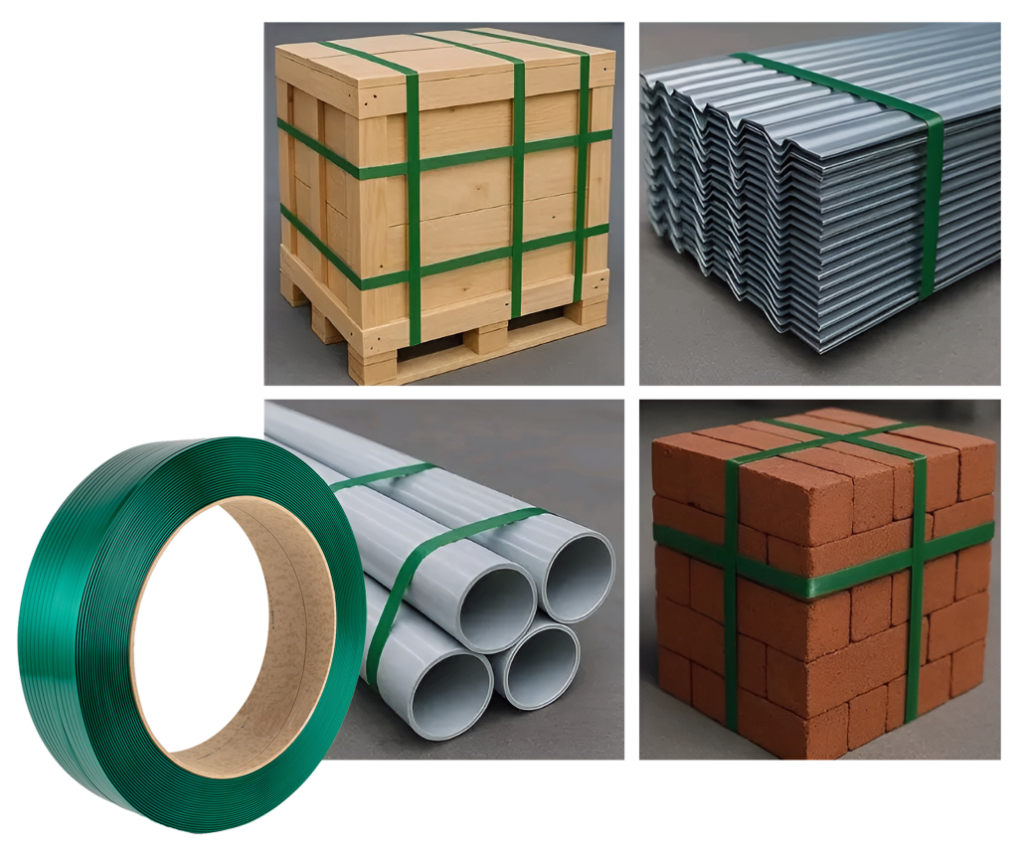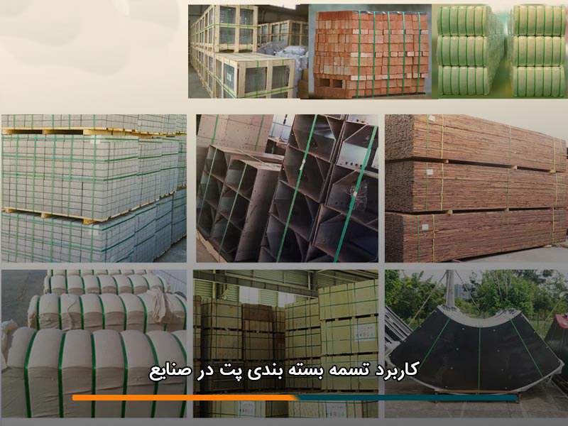 صنعت سنگ و کاشی: برای بسته بندی پالتهای سنگ، سرامیک و کاشی استفاده میشود. تسمه PET با مقاومت بالا مانع از باز شدن یا آسیب دیدن بستهها در حین حملونقل میشود.